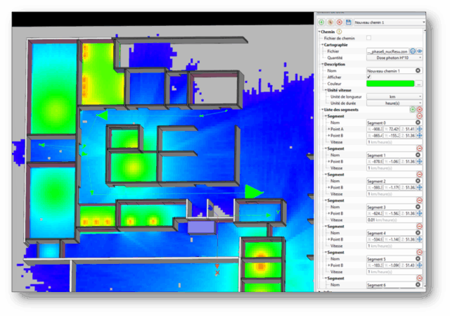 Cette fonctionnalité est disponible dans RayXpert, elle vous permet de calculer la dose reçue par un opérateur sur son trajet, suivant différents segments du déplacement, et au total. Cette fonctionnalité vous permettra de réduire le temps d’exposition des opérateurs en sélectionnant le parcours le plus optimal. Idéal pour la mise en place d’une démarche ALARA.